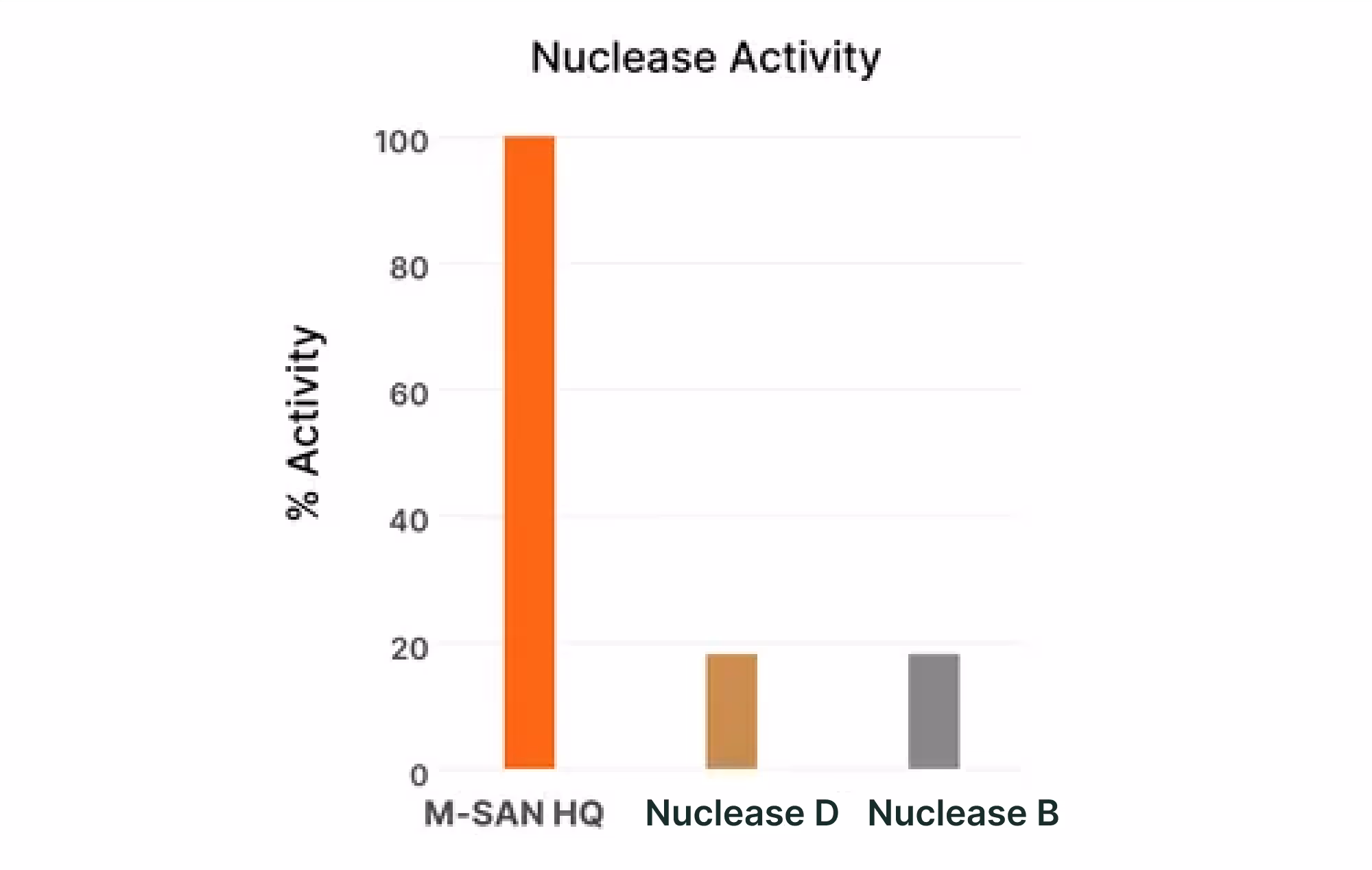 - Regulatory Compliance: M-SAN HQ and SAN HQ facilitate digestion of residual DNA, aiding in compliance with FDA standards. GMP format of both enzymes offer an additional layer of regulatory assurance.